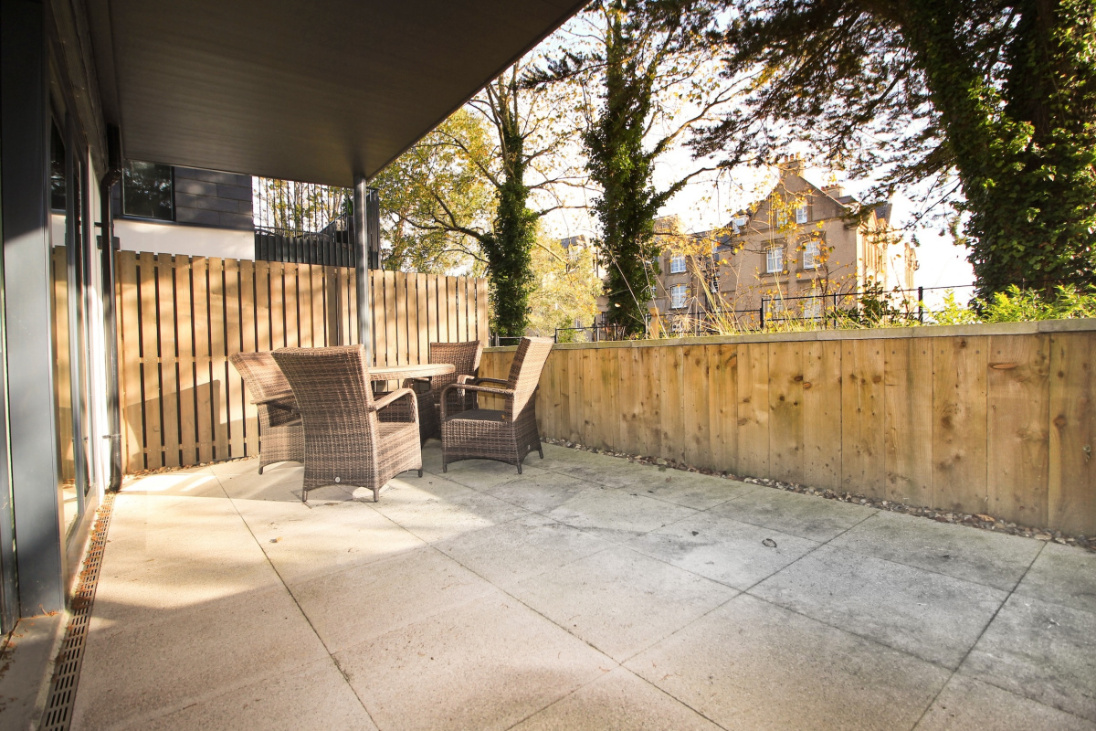 This comfortable apartment features single storey living, with two bedrooms, one ensuite, and a superb family bathroom. A generous open plan living and dining area with integral kitchen leads out to a secluded terrace which bathes in the morning sun. Enjoy glimpses of the estuary through the trees which shelter and protect this lovely outside space, the perfect spot for morning coffee or evening drinks.