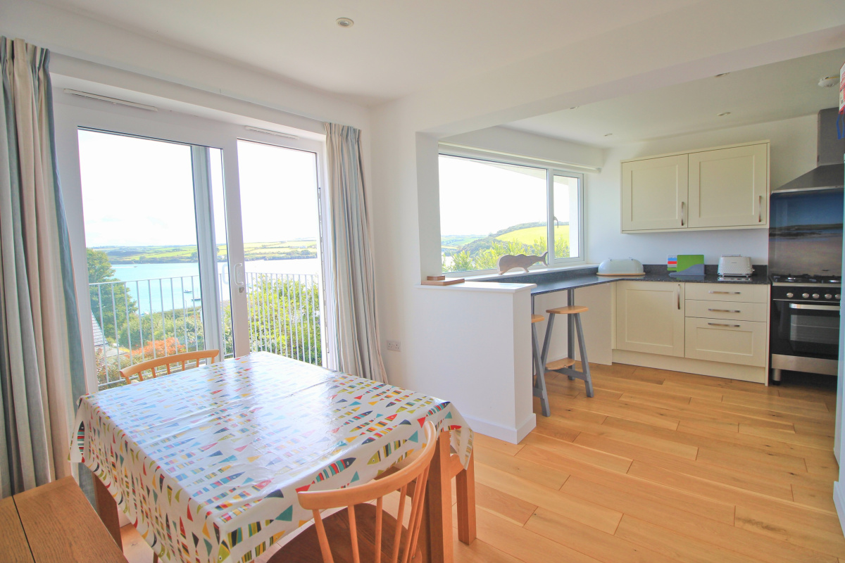 A bright entrance hall leads through to the living accommodation on the ground floor, with oak flooring throughout this floor. Including a comfortable sitting room which benefits from superb views across the estuary and a log burner for cosy winter evenings. A door leads to the kitchen and dining room, fitted with modern units and a breakfast bar conveniently located to make the most of those glorious views and sun rises. Accessed from the lounge or dining area, there is a spacious balcony offering a perfect space to relax and appreciate the view across the estuary and down to the iron bridge. To complete this floor, a useful cloakroom sits off the entrance hall.