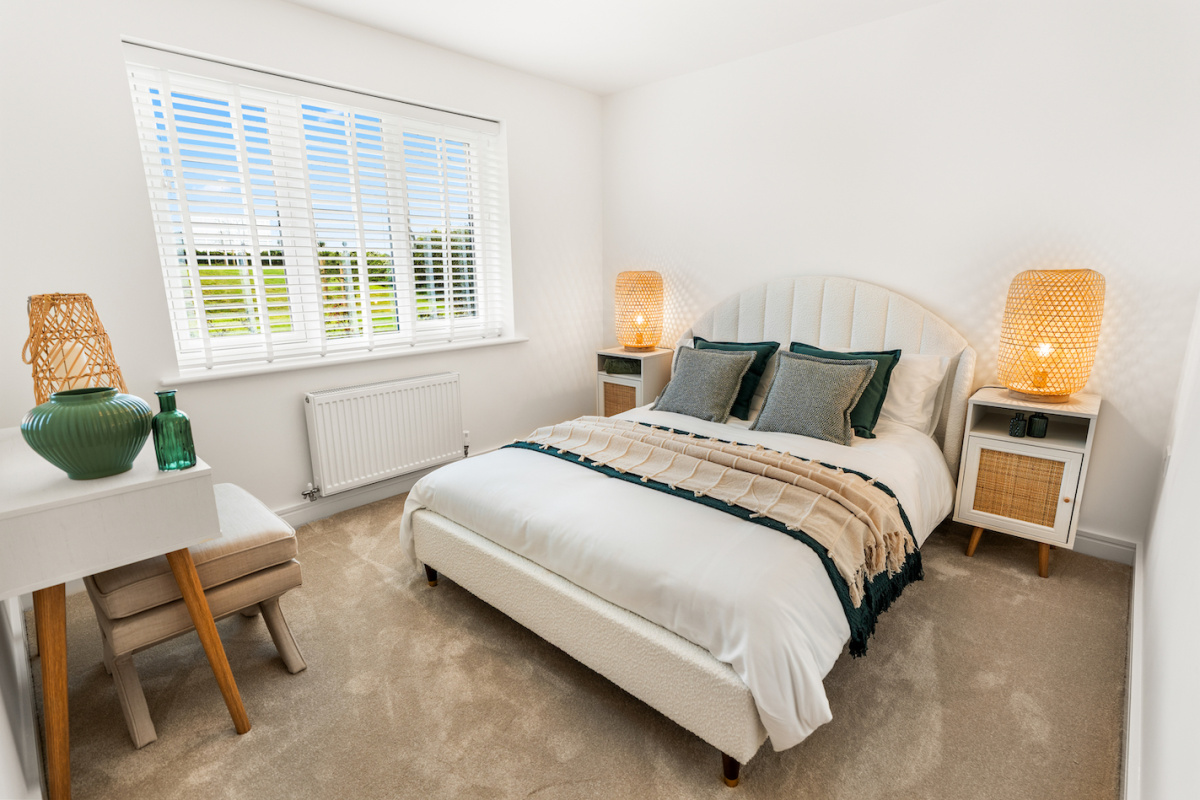 The thoughtful design of The Primrose is demonstrated in the flow of the home, as you continue from the living space back to the hallway and the bedrooms. The primary suite sits to the front of the home, with a triple window filling the room with light. Wall-to-wall built in wardrobes provide ample storage and an attractive en-suite with contemporary fixtures and fittings continues the feeling of hotel-style luxe. The second double is bright and spacious, and the third bedroom is a comfortable single room, which could equally be used as the perfect study. The family bathroom is again a generous size, with Roca fixtures and fittings, modern tiling, and plenty of natural light.