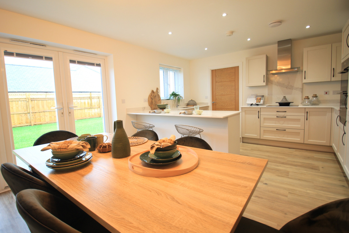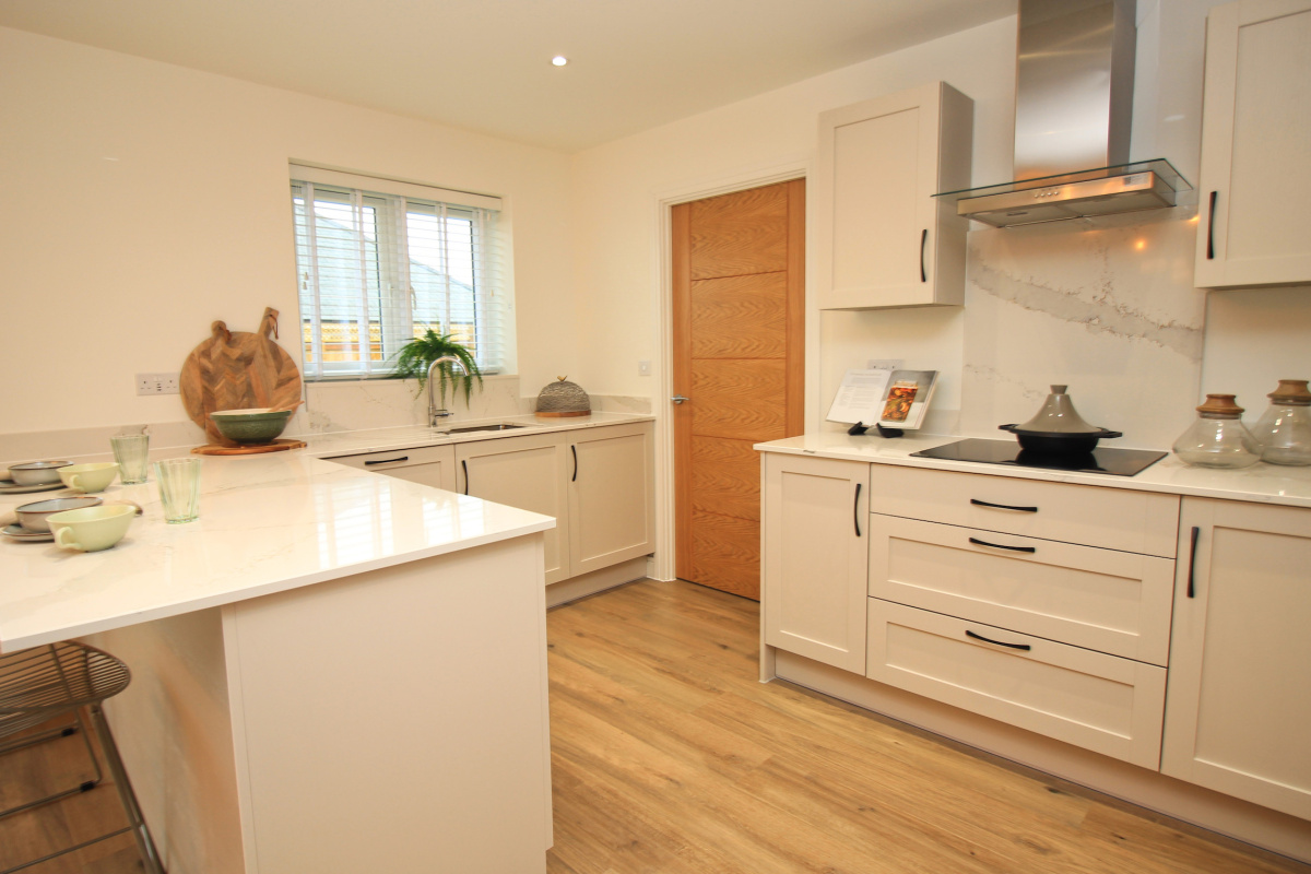 This stylish home enjoys a substantial frontage, which hints at the space within. Upon entering, you are greeted by wide and welcoming hallway, which draws you through to the living areas beyond. The Primrose has been designed with generosity in all areas, and the spacious living room, dining room and kitchen are examples of this. The open-plan kitchen diner is bright and modern, with high-end wooden cabinetry and beautiful granite counter-tops. The stunning kitchen features an induction hob, an Electrolux double oven, dishwasher, and fridge freezer, which fit perfectly with the contemporary feel.  A handy utility room leads off the kitchen and has access to the rear garden, perfect for those post-gardening clean ups.
