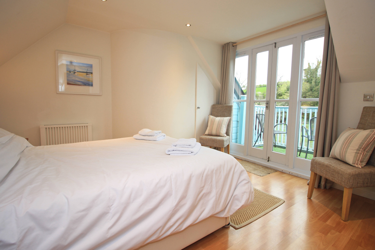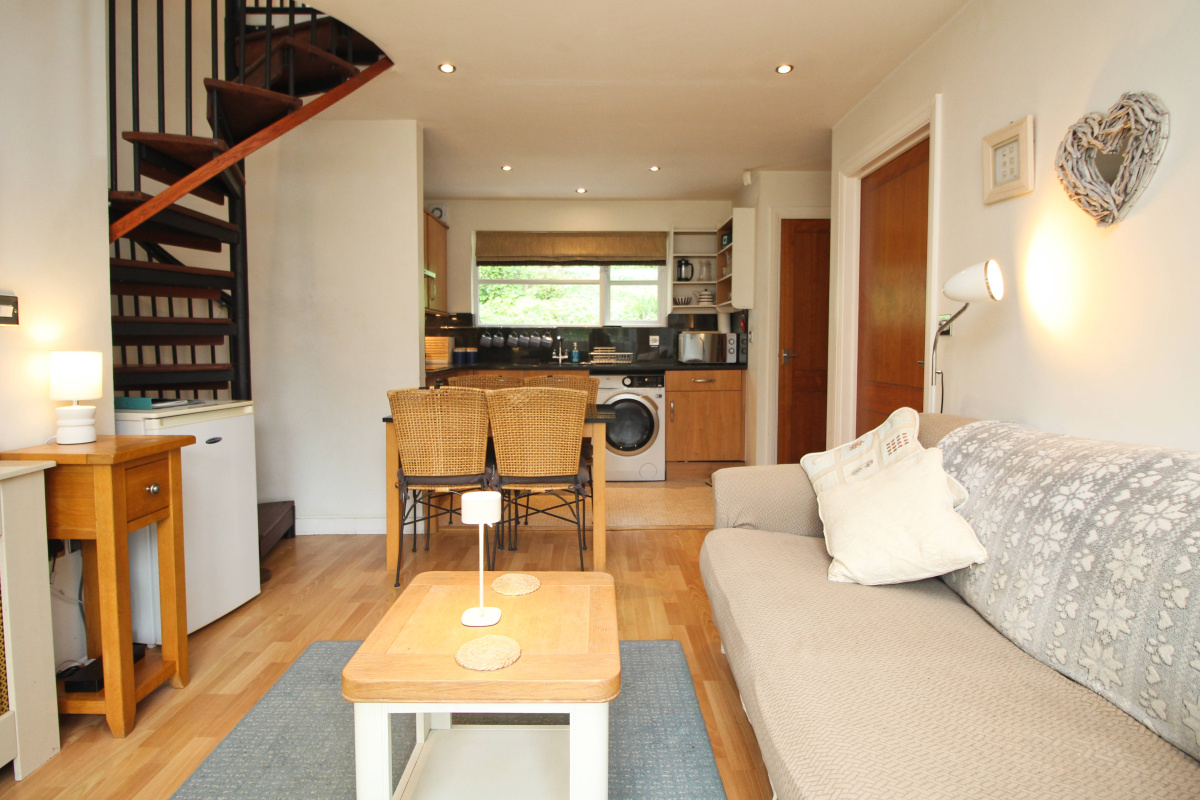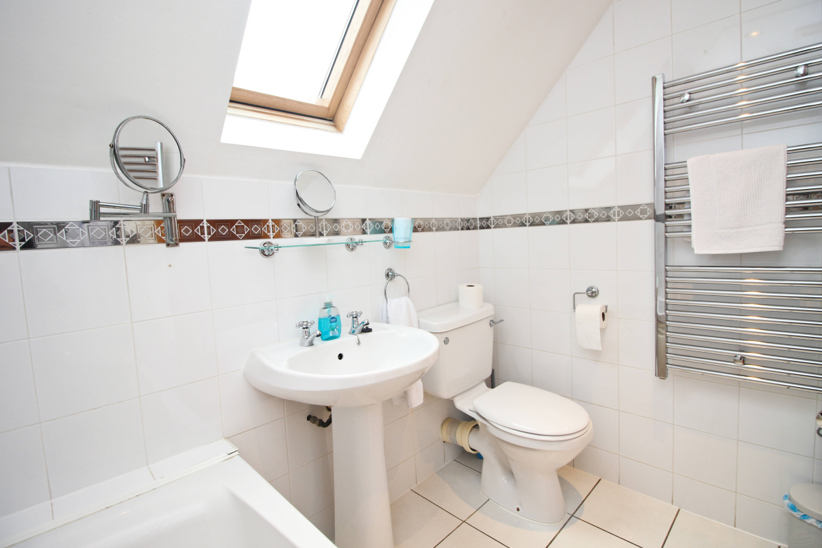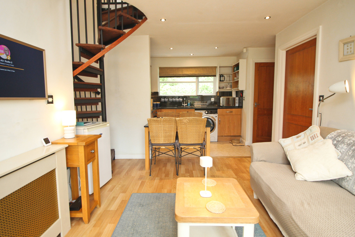 The ground floor of the cottage is completed by a bright twin bedroom and useful shower room, both in good decorative order throughout. A spiral staircase takes you to the first floor, where you find the spacious master bedroom and bathroom. The master bedroom is a tranquil retreat, complete with a balcony that takes in those stunning river views and the countryside beyond. The bathroom is fully tiled and benefits from a velux window which floods the room with light.